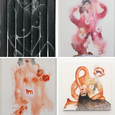 Ink, acrylic, & pastel on canvas. 48 x 36 in.