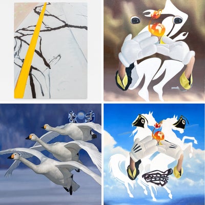 Within the thick foliage of the Amazon, coca leaves (acullico) pour forth from the thousands of shrubs that turn green, ocher, and yellow owing to the light penetrating the canopies. There, in the immensity of the shadows, powerful roots emerge—plants that, when ingested, cause alterations in states of consciousness, transmuting the perception of individuality, of being, and of the environment, reminding us that both the body’s inside and its outside are perceived and imagined at the same time. In this pictorial ensemble, Miguel Ángel Ríos presents a unique vision of himself via self-portraits that explore a fluid and constantly transforming “I,” which with each layer of paint ends up becoming unrecognizable, blurring the distinction between reality and imagination. In this sense, visual elements such as the face, the hat, and the scarf are configured in an amalgam of artistic styles, without any one element losing its own individual style within a composition that seeks to question the conventions of representation in a world governed by social media, and in which identity is characterized by being fixed and immutable. Apart from the light and shadows in Ríos’s visual landscapes, a range of colors is revealed that goes from dark to pastel tones. Fauna is present through lurking postures, operating as reminders, as with the ant that—with a subtle wink—recalls Operación Hormiga (Operation Ant), which is carried out by hand in order to pass coca leaves from one territory to another in southern Latin America, or with the figure of the scorpion that symbolizes a level of the unconscious, full of imagination and uncertainty. \- Mariana Camargo , Curatorial Coordinator Mixed media on canvas