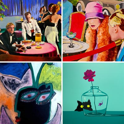 JUSTIN LOVE, A NATIVE OF NEW YORK CITY HAS BEEN A PAINTER SINCE 1986. HE LIVES IN THAILAND AND VIETNAM ,AND ALSO HAS STUDIOS IN WOODSTOCK,NEW YORK ,AND JAMAICA IN THE CARIBBEAN.HE HAS SOLD MORE THEN 3500 PAINTINGS , HAS DONE SHOWS ALL AROUND THE WORLD, AND IS IN MANY NOTABLE COLLECTIONS.ONE COLLECTOR ALONE HAS 107 OF HIS PAINTINGS. HIS WORK IS FUN TO LIVE WITH. JUSTIN IS ALSO AN ACCOMPLISHED AND RECORDED MUSICIAN,SINGER ,AND COMPOSER. HIS STUDIO IN NEW YORK IS IN A 120 YEAR OLD CONVERTED CHURCH AND IS CALLED LOVELAND.IT IS A TRIP INTO THE PLAYFUL MIND OF AN ARTIST WHO GREW UP IN MODERN POP CULTURE. HE LIVES IN A SURREAL KALEIDOSCOPE OF MYTHICAL CREATURES, ELECTRIFIED MYSTERIES, IMPOSSIBLE HUES AND POETIC PASSION ALL SPINNING WITH MUSICAL ABANDON. “ I PAINT AS FAST AS I CAN AND TRY NOT TO GET IN THE WAY OF THE CONSCIOUSNESS OF ART “. I LET IT GUIDE ME. I ONLY WANT TO MAKE SOMETHING I CAN HANG ON MY WALL ,THAT MAKES ME FEEL HAPPY AND EXCITED TO SEE .” ART FOR ME IS MAGIC, NOT BIG WORDS ,PRETENTIOUS COMMENTS, OR PHILOSOPHIES.