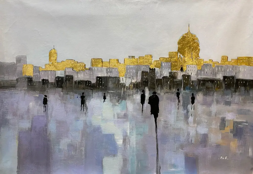 The painting is reflection on the city of Rome - its architecture, structure and the role of human being within it - captured in an abstract composition.
