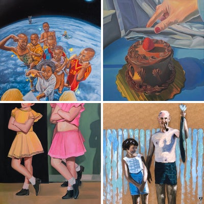 Koo’s oil paintings encompass a wide range of subject matters and styles. However, if there is one thread that pulls her work together it is the idea of responding to and expressing emotions and experiences through painting. She draws inspiration from mundane events, media, human desire, motivation, apathy, and helplessness. The banality of the images depicted, sometimes in bright, saturated colors and other times faded and pale, become surrogate self-portraits, memories, and hopeful futures. This can take the form of a carefully staged still life representing identity, appropriated media images of idealized love and romantic relationships, or food that can give a sense of belonging, physical satisfaction, or contrarily an invitation for discomfort and sweet temptations.