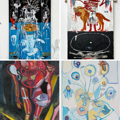 Kay Gasei’s dynamic works combine the mythological with the historical, resulting in rich, ambitious yet ambiguous compositions. Gasei uses his imagination to draw on personal memories of the past, mixing these with historical research to create confident, complex works that collapse time and space. Gasei’s eclectic style blends abstracted, expressive mark making with figuration to play with the notion of narrative, creating fractured tales that maintain an air of obscurity despite feeling somewhat familiar. A cache of recurring characters and motifs inhabit a range of landscapes - both used to explore colour and texture, tapping into the language of painting itself as well as Gasei’s own subconscious. The work has a deep sense of self-reflection, with Gasei using both visual and literary tools to interrogate social systems. Formally, Gasei’s rich, textural areas of slowly built up impasto verge on the sculptural, sitting in contrast to the warm natural tones of the linen. The materiality of these works is ever present, with the ambiguity of the scenes allowing the works to be appreciated on a purely painterly level, stripped of meaning or pretence. Gasei’s hand is fast and blunt, capturing the energy and expression of both his process and characters. Cleverly playing with the three dimensional and the two dimensional, Gasei’s works oscillate between representational and style, often appearing in flux or in progress - hinting at the notion of time and the creative process itself.