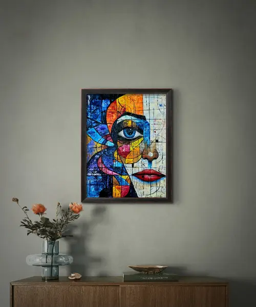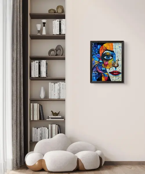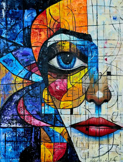 "The Observer” explores the quiet intensity of perception the state of awareness that exists between thought and emotion. A fragmented face emerges through vivid layers of color and geometry, anchored by a single piercing blue eye that seems to watch both the viewer and itself. Each stroke reflects consciousness dissected into form and hue, where chaos meets clarity. This artwork symbolizes inner reflection the part of us that remains still, observing our own emotions, choices, and existence. The balanced composition of warm and cool tones represents the harmony between logic and feeling, presence and thought. “The Observer” is not just a face — it is the awareness behind every gaze, a mirror of stillness amidst movement.