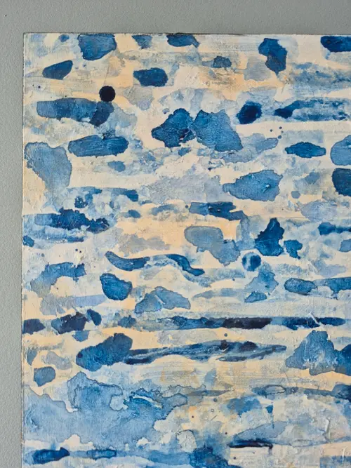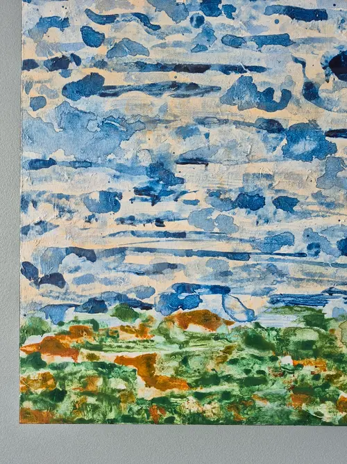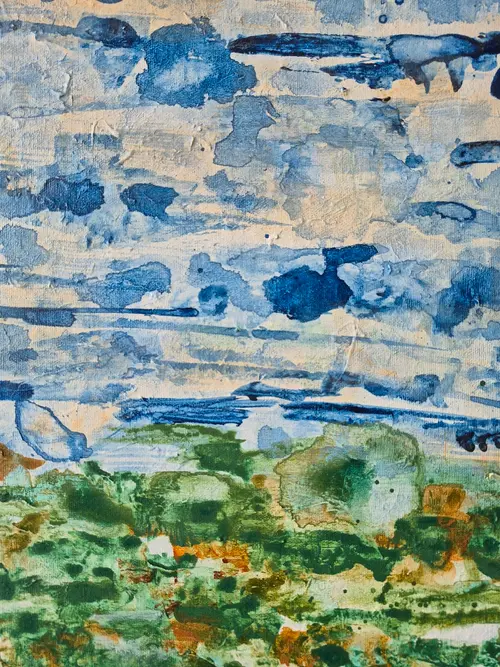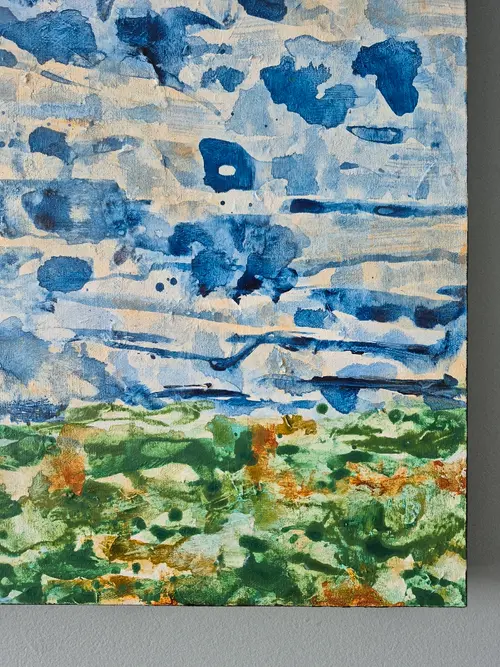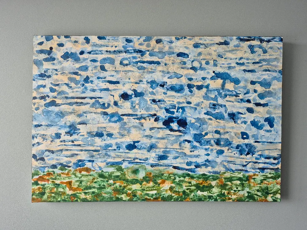 The Pause. This piece explores the moment between breaths, when everything feels okay. This piece was painted from evening walks down to the pond. It reflects the s pause after a long day, abrief stillness to catch my breath before returning home, before the rhythmoflife begins again. Painted in 2025-2026