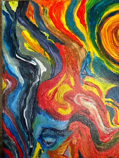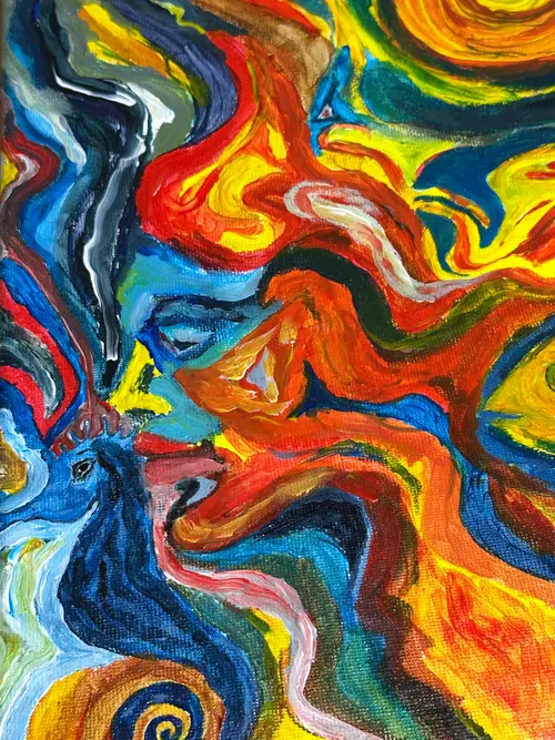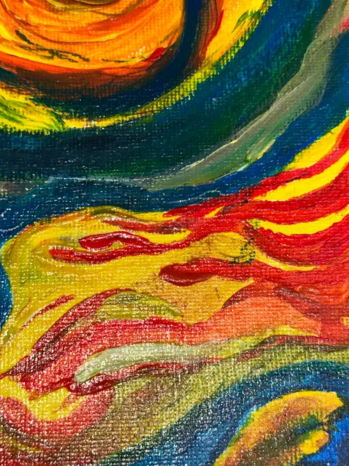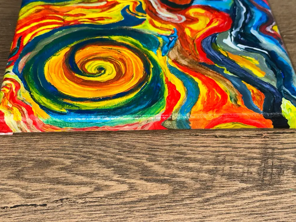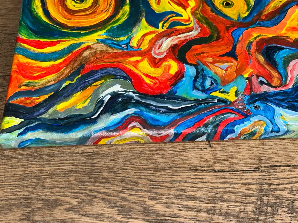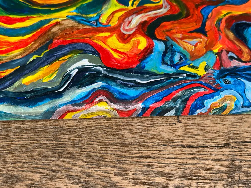 THE WINDS FORMED : is An arwork in which I wanted to express my feelings as an artist through primary colors. Each brushstroke conveys a form, and the blended forms express a spirit. Artworks should be enjoyed and understood by everyone in their own way, so I won't explain further; I'll leave it to the art lovers. (CANVAS Van BLEISWIJCK HOLLAND/ Acrylic and Varnish to save)