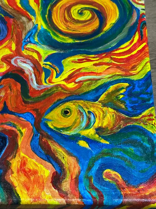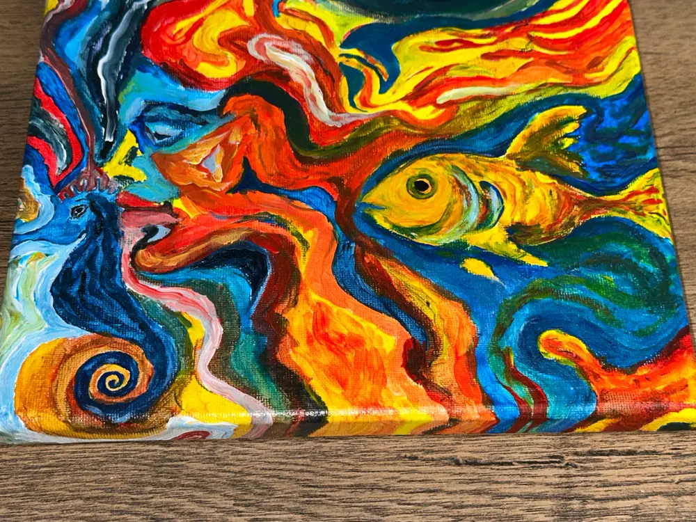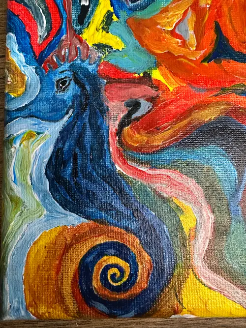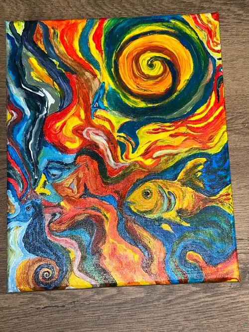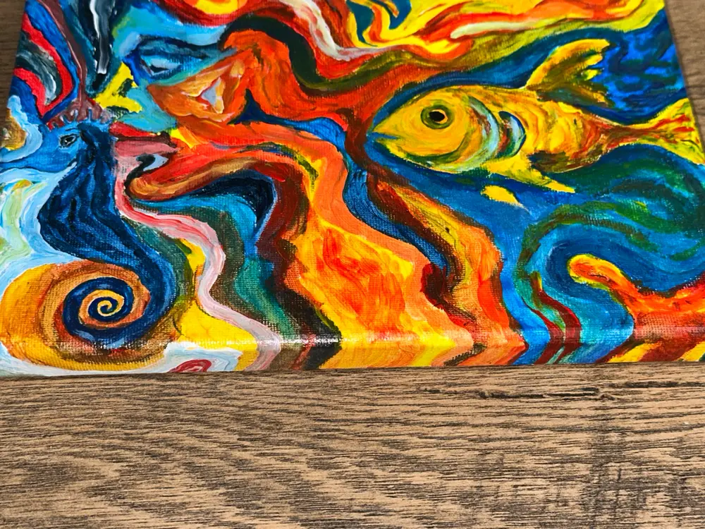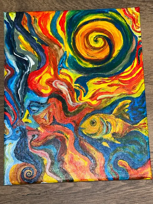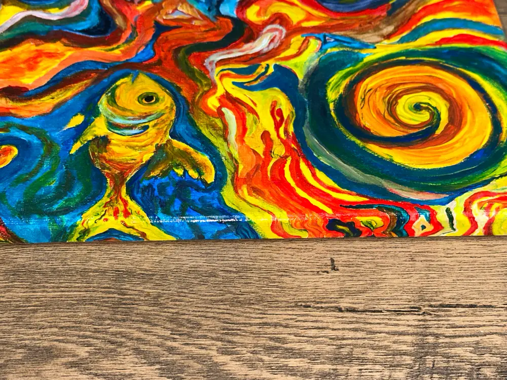 THE WINDS FORMED : is An arwork in which I wanted to express my feelings as an artist through primary colors. Each brushstroke conveys a form, and the blended forms express a spirit. Artworks should be enjoyed and understood by everyone in their own way, so I won't explain further; I'll leave it to the art lovers. (CANVAS Van BLEISWIJCK HOLLAND/ Acrylic and Varnish to save)