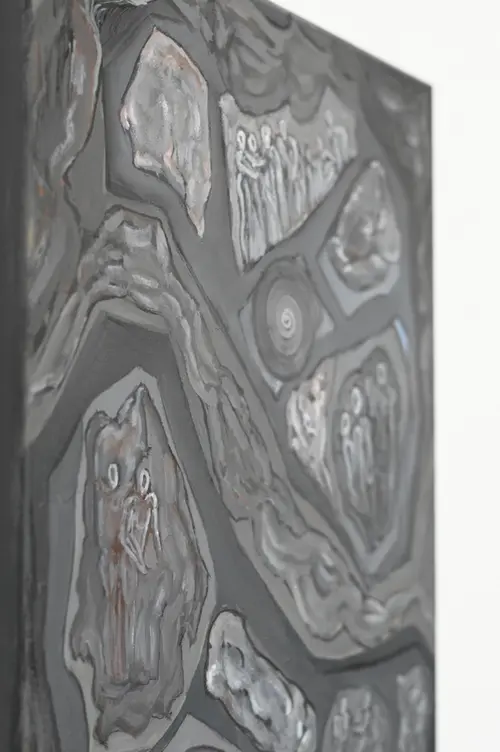 JADE MIKELL (b. 1996) is a disabled artist and activist. She lives on unceded Lək̓ʷəŋən land by way of unceded Taystayič. She earned her BFA with Distinction (cum laude) from the University of Victoria in 2023. Mikell works in painting, sculpture, installation, words, movement and (upcoming) sound to investigate subjects like inheritance, labour, hierarchy, social currency and sustainability through the lens of disability. Recent work has cited her upbringing in Anthroposophy and undergoing ABA therapy to emphasise the demoralising and endangering effects of institutional inaccessibility. Mikell often inspects the moral inadequacy assigned to disability in these environments through repurposing associated symbols and motifs, often posited to have curative effect. in production, Mikell locates supplies entirely from sources which interrupt the sequence of consumption and disposal; upcycled, salvaged, and repurposed materials. Mikell is interested in how accessibility and sustainability often conflict, and intends to question how we might practise sustainability and conservation without relying on exclusion. Jade Mikell’s work has been exhibited and collected internationally. Her work has been exhibited by Visionary Projects NYC, The Fifty Fifty Arts Collective, Audain Gallery, B.L.O.C.K.H.O.U.S.E. and more. Her most recent international solo exhibition, Vuelve, Oración en el Cielo opened earlier this year at Casa Lü—El Sur in México City, presenting Mikell’s research which compared how migratory birds and disabled bodies navigate climate instability. Her work has been published on ArtConnect, Behind Art (formerly Parrot), the Canadian Broadcasting Corporation and more. Awards for Mikell include a Canada Arts Council Explore and Create (Research and Creation) Grant, an Innovate Grant Honourable Mention and a MyMa Art Grant Honourable Mention.