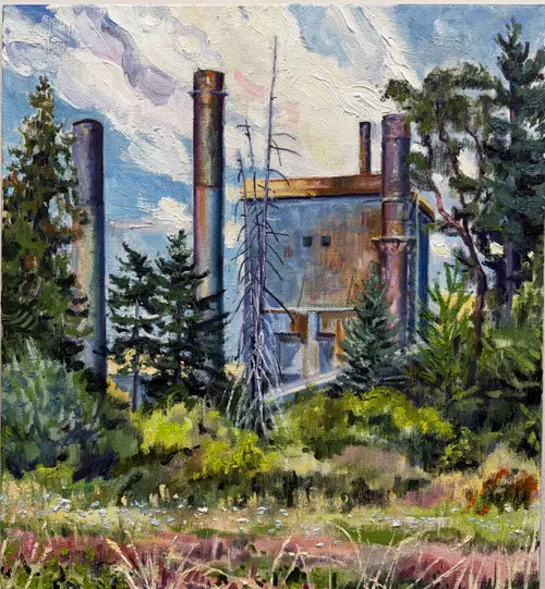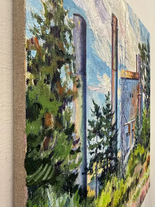 Oil on linen. A pulp mill in Crofton, BC. Started in 2023, completed in 2025 We are nature.