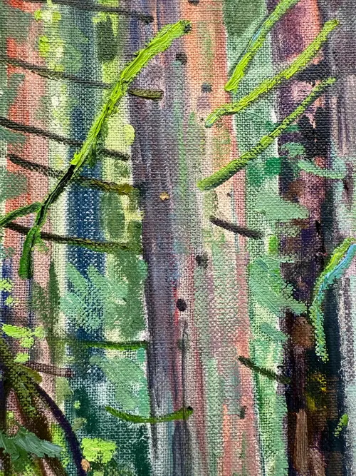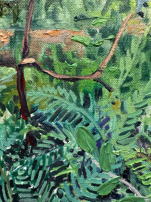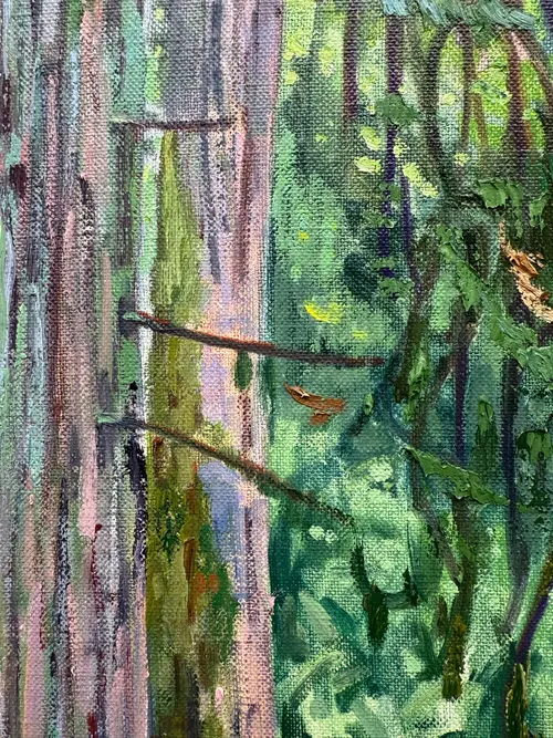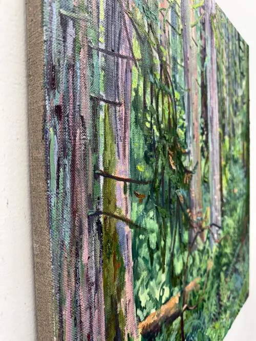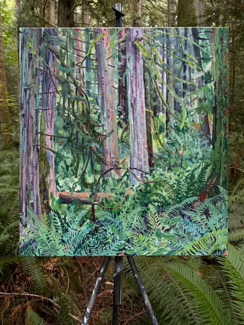 Oil on linen, painted on site in the coastal rainforest of British Columbia. Autumn 2025