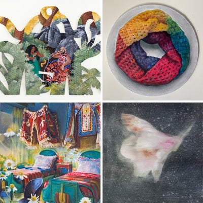 Devin Osorio grew up as a first-generation Dominican American in the northern Manhattan neighborhood of Washington Heights. Osorio takes inspiration from Dominican culture and folkloric traditions, including a strong emphasis on textile patterns. These cultural influences merge with biographical details from Osorio’s lived experience, yielding paintings that function as secular reliquaries, commemorating a life lived between cultures. _ Devin Osorio creció como dominicano-estadounidense de primera generación en el vecindario de Washington Heights, en el norte de Manhattan. Osorio se inspira en la cultura dominicana y las tradiciones folclóricas, incluido un fuerte énfasis en patrones textiles. Estas influencias culturales se fusionan con detalles biográficos de la experiencia vivida de Osorio, produciendo pinturas que funcionan como relicarios seculares, conmemorando una vida vivida entre culturas.