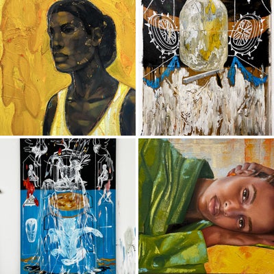 Cindy Rucker Gallery is pleased to present new works by Brooklyn-based artist Frederick Hayes. In this exhibition, Hayes continues to explore the representation of the self and the urban landscape through abstraction, likeness, and difference. Using different media, Hayes intends to shed light on the human condition as it relates to the working-class African Americans, as well as larger communities of men and women. Raised in the South as part of a family that watched the 6-o’clock news, read Ebony and Jet, as well as the local newspapers, Hayes developed a strong interest in picture-making—the basic ideas of looking, recording, and interpreting—and portraiture early on. Through painting and drawing, Hayes creates ad hoc communities where the good and the bad, the heroes and the villains coexist; much like in reality, his characters possess diverse personalities, habits, and ways of seeing the world. His sculptural practice, on the other hand, is steered by a more open exploration of abstraction, where the verticality and geometry of the landscape marries the detritus of the city, the direct result of his wanderings through different neighborhoods. “Because no one really knows thyself,” the artist writes, images of the self “constantly morph from one image to the next, providing a glimpse before reshaping into something else.” “As a child we learn to present ourselves the way we want people to see us, but not always how we really are,” he states, suggesting that self is bound to be an ongoing, life-long process.
