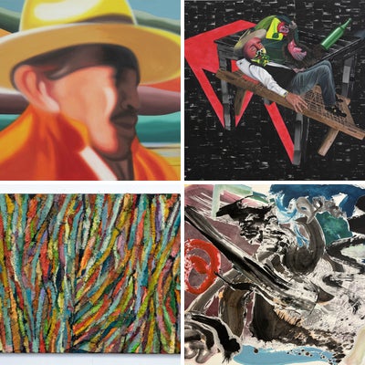 Within the thick foliage of the Amazon, coca leaves (acullico) pour forth from the thousands of shrubs that turn green, ocher, and yellow owing to the light penetrating the canopies. There, in the immensity of the shadows, powerful roots emerge—plants that, when ingested, cause alterations in states of consciousness, transmuting the perception of individuality, of being, and of the environment, reminding us that both the body’s inside and its outside are perceived and imagined at the same time. In this pictorial ensemble, Miguel Ángel Ríos presents a unique vision of himself via self-portraits that explore a fluid and constantly transforming “I,” which with each layer of paint ends up becoming unrecognizable, blurring the distinction between reality and imagination. In this sense, visual elements such as the face, the hat, and the scarf are configured in an amalgam of artistic styles, without any one element losing its own individual style within a composition that seeks to question the conventions of representation in a world governed by social media, and in which identity is characterized by being fixed and immutable. Apart from the light and shadows in Ríos’s visual landscapes, a range of colors is revealed that goes from dark to pastel tones. Fauna is present through lurking postures, operating as reminders, as with the ant that—with a subtle wink—recalls Operación Hormiga (Operation Ant), which is carried out by hand in order to pass coca leaves from one territory to another in southern Latin America, or with the figure of the scorpion that symbolizes a level of the unconscious, full of imagination and uncertainty. \- Mariana Camargo , Curatorial Coordinator Acrylic and oil on canvas