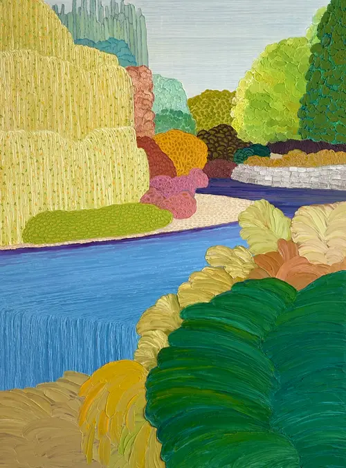 I make imaginary paintings that oscillate between abstraction and representation. My fascination lies in exploring diverse visual experiences. I aim to create paintings that evoke a sense of mysticism, dreaminess, reflection, and healing, drawing inspiration from personal memories, nature, and art history - including Eastern traditional landscape, Post-impressionism, Les Nabis, Spiritual abstraction, and Post-pop landscape.