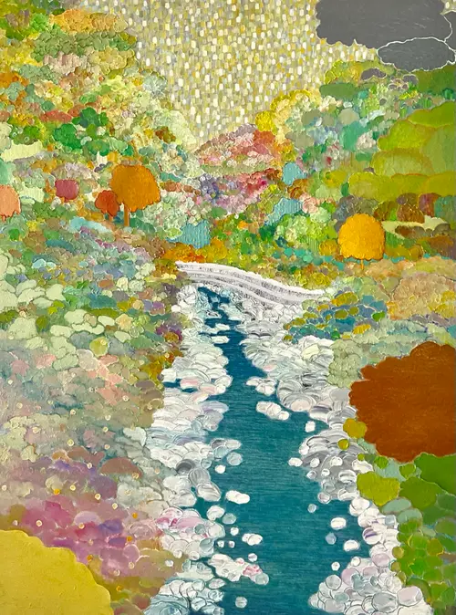 I make imaginary paintings that oscillate between abstraction and representation. My fascination lies in exploring diverse visual experiences. I aim to create paintings that evoke a sense of mysticism, dreaminess, reflection, and healing, drawing inspiration from personal memories, nature, and art history - including Eastern traditional landscape, Post-impressionism, Les Nabis, Spiritual abstraction, and Post-pop landscape.
