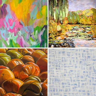 Willow trees edge the banks of a pond sparkling with reflections. Lovely tones of green and ochre enliven this serene and ethereal painting. This beautiful work of art is painted white around the sides and arrives ready to hang. ARTIST’S STATEMENT –ESSENCE OF LANDSCAPE My childhood summers were filled with weekend explorations of the countryside. These early road trips, rich with images, fed my internal visual archive. Viewed from the car window, an ever-changing vista rolled before my eyes. Walks through woods immersed me in dark shadows where rays of glinting light pushed their way between boughs, dappling the forest floor, luminous and redolent of earth. In this landscape series, I’ve painted scenes inspired by both the countryside and the city’s verdant backyards, all filtered through imagination and an emotional response translated into lively brushstrokes and an abundance of colour. Impasto strokes of acrylic are laid upon watercolour like underglazes and the charcoal marks of the initial drawing are sometimes revealed. The paintings depict the energetic essence of landscape and capture the passion for the natural world that I was introduced to as a child, that held a kind of magic and an ethereal quality that still resonate strongly within me.